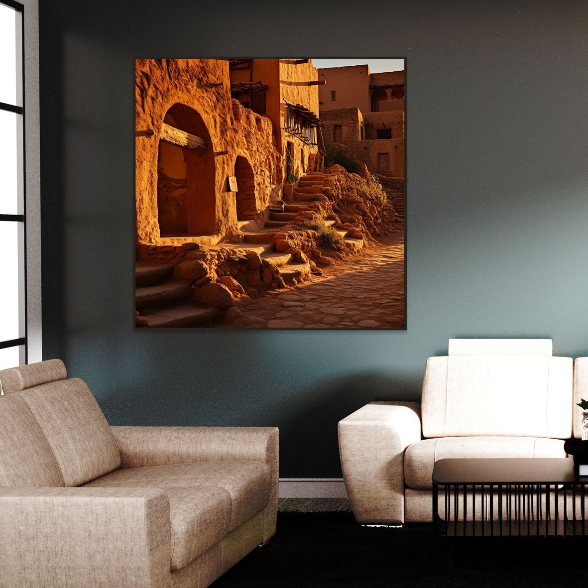 لوحة جدارية بتصميم مميز ، مطبوعة على أفخر أنواع قماش الكانفاس اللامع ، مثبت على إطار خشبي مخفي ، متوفرة للعميل بإطار فاخر ملون ، وبدون إطار خارجي فقط قماش مشدود على خشب سويدي معالج